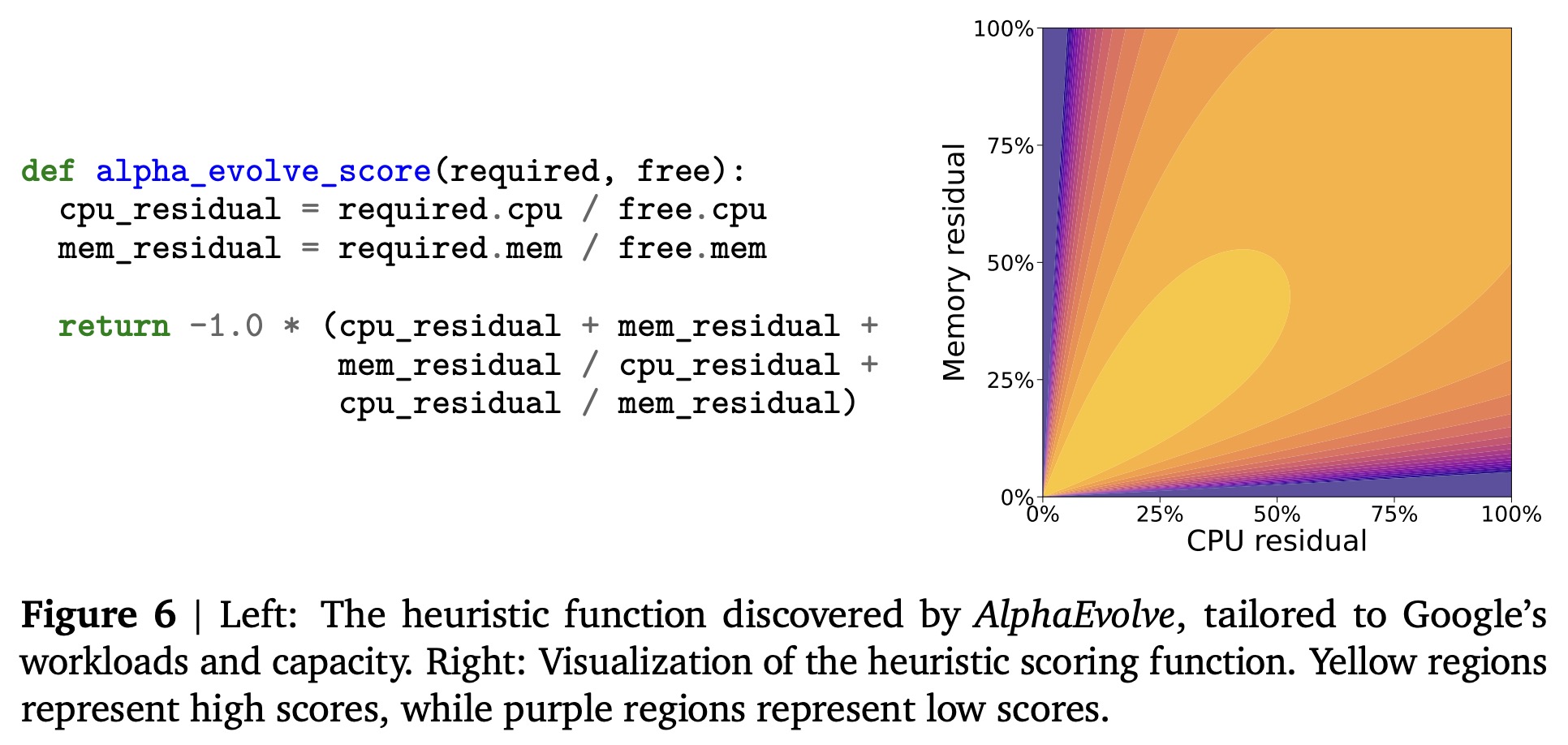 An early version of AlphaEvolve was used to evolve a heuristic function that ranks machines for job assignment based on their available resources. This heuristic integrates into Borg, Google’s scheduler, without overriding its core logic, ensuring correctness.