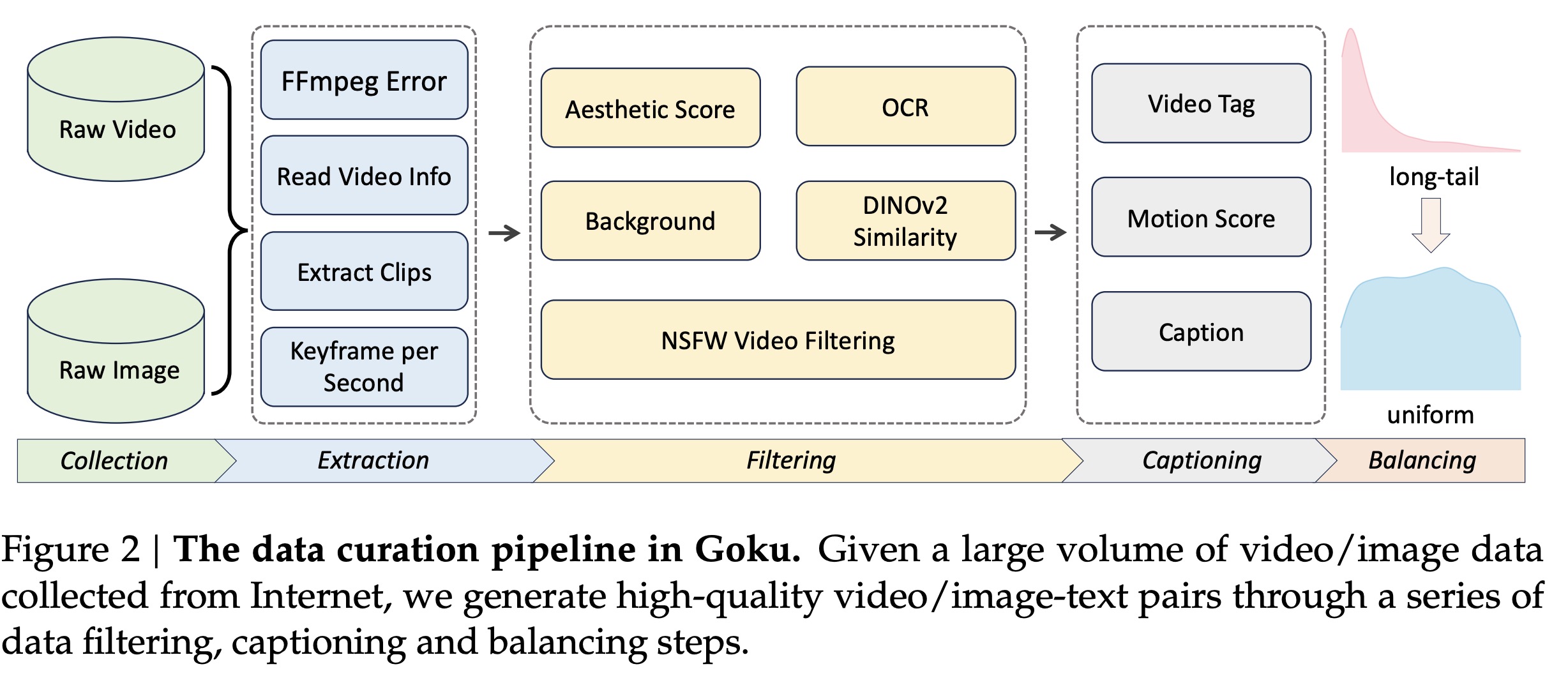 - Visual Aesthetic Filtering retains only highly photorealistic clips based on an aesthetic score threshold.